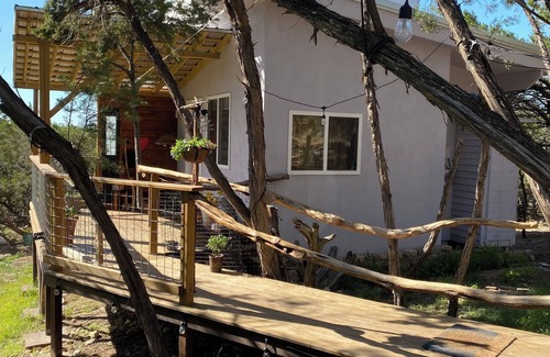 Enchanting cabin with 3 porches surrounded by wooded land 20 min to city & Zilkr | House in Austin