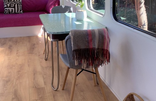 The Best Island Bus offers unique accommodation on the shores of the Waimea Inlet. There is a queen bed that gets wonderful morning sun and has views to the garden. We have included a designated luggage and storage area for your cases. The kitchen is compact with a double sink, a ceramic hob, a fridge and microwave/grill. We have sourced a retro table and comfortable dining chairs. Best of all, a generous sofa that looks out over the estuary, where you can stretch out with a book and glance at the herons and kingfishers.