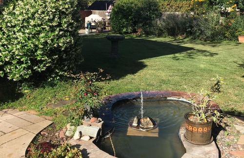 The cottage is a separate unit, a backyard 'granny-flat' that's about 750sq. feet . You have two seperate bedrooms, a kitchenette/living area plus bathroom. Freshly remodeled, this 'beach close' charmer looks out upon a secluded garden and lawn and loads of flowers. Eclectic is the feeling. Attention to 'creature comforts' and simplicity was the intention when renovating[Italian and Mexican tile accents, hardwood floors...] . An adjoining [but completely private] second bedroom is generously sized and includes a double bed. The kitchenette and living area overlooks the lawn and garden area.. . NO SMOKING in house or on the grounds. NOTE: there is a step from the main bedroom area into the kitchen area..Also from the kitchen area to the outside patio.