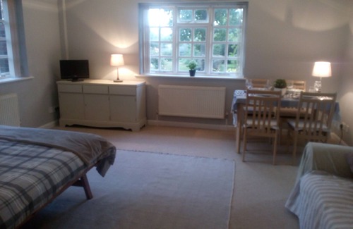 The studio is set within a larger property and gardens. It is a self contained annex with separate entrance. As stated in the title, it is a studio and therefore does not have a separate bedroom, however It has a large living space, ideally for a couple but has a sofabed can accommodate up to 4 people. There is a fully equipped kitchen and a separate shower room/wc. It is ideal for walkers, with many footpaths in the area and the Greensand Way adjoins the property. There is ample off road parking and Pluckley railway station is less than a mile away. For those coming by train, a collection service can be arranged for a small fee. There is a TV and free access to wifi. The property can be rented out for a minimum of 2 nights.
