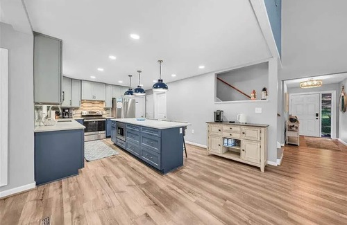 Gourmet Kitchen: Fully equipped with modern appliances, ample counter space and a breakfast bar, stocked with plenty of cookware/utensils/small appliances/spices/etc.