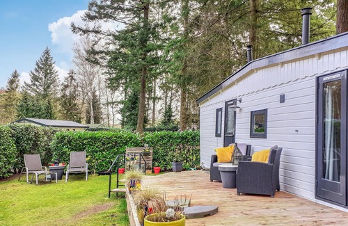 This cozy furnished vacation home is located in a beautifully landscaped vacation park in Vorden. Enjoy a snack and a drink in the garden after an active day in the inviting surroundings. The cottage has a cozy sitting area with TV and stereo, an open kitchen with dining table, a bathroom with shower and sink, 2 bedrooms and a separate toilet. The shed offers space for bicycles.