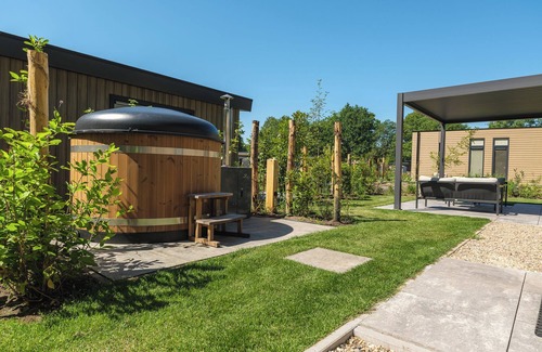 Enjoy a luxurious holiday home for 4 people in the wooded nature of the Veluwe, complete with modern amenities, air conditioning, and a stylish pergola for optimal comfort. Additionally, unwind in the private hot tub, perfect for relaxing after a day | House in Lieren