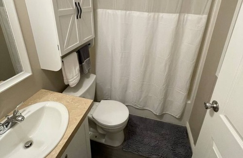 This is a very large modular home and is a duplex. Guests enjoy two bedrooms, a full bathroom, fully equipped kitchen, living room, and an outside deck and BBQ! A tenant occupies the second half of the duplex and has a separate and private entrance. The property has plenty of parking, to include parking for small boat trailers.
