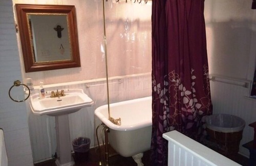 The bedroom has a queen size bed, antique dresser, chair and other antiques. It is decorated in pink and white. The bathroom has a footed tub and shower which is decorated in burgundy and navy. The kitchen area and eating area has a sink, small microwave and small refrigerator, an antique table and chairs and is decorated with in an apple motif and burlap curtains. The decor is very attractive. A Bar-BQ pit is available. Enjoy tranquility on the porch swing and country scenery with cattle in the fields. A quaint getaway to enjoy and relax.