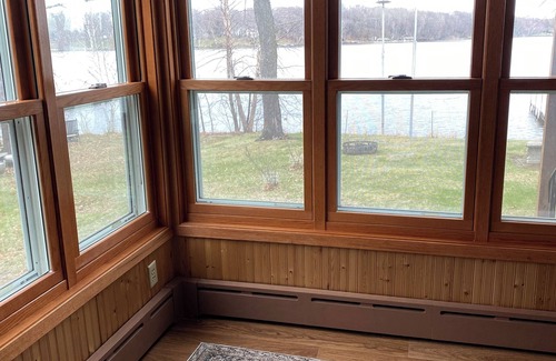 Cozy and comfortable. Inside you will find a great view of the lake with lots of wildlife to be seen. The porch has three sides of large windows allowing for gorgeous views of the lake. You can relax around the gas fireplace or catch up on your favorite shows on the 55 inch tv. In the game room downstairs you will find an electronic dart board, foosball table and an 8 person poker/game table. Also included are several different card and board games. The storage shed has many things included for your use. There is a propane grill, extra folding picnic table, cushions, life vests, a few fishing poles, drink holders, umbrella, rolling cooler, corn hole/bags, marshmallow/hot dog roasting sticks, chairs for around the fire as well as other items for your use. There are 2 bedrooms on the main floor and 2 bedrooms in basement as well as a pull out couch on the porch (one of the downstairs bedrooms is a non-conforming bedroom that could be used as a home office if needed and the other bedroom has an egress window). The main floor bathroom has a tub and there is a separate shower located downstairs. The main floor laundry is also another plus! Located less then 30 minutes to downtown St. Paul or Minneapolis.