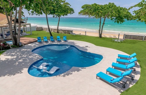 Luxury 8-bedroom with en suite bathrooms villa. Each room has an incredible beach view, as the property sits right on the edge of the glistening warm waters of the Caribbean Sea. Each bedroom features air conditioning, a ceiling fan, and a 55'' flat-screen TV with cable access in queen bedrooms and a 65” flat-screen TV with cable access in king bedrooms. Sonos wireless speakers, safes, USB ports at side tables & telephones with intercom. All bathrooms feature fans, double vanities, a blow dryer, bathrobes, feature lighting, and mini steamers.