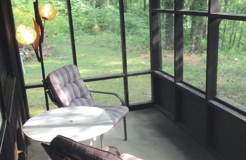 This two bedroom home with central AC and clean, sanitized, comfortable accommodations is under 2 hours from Chicago. On the St Joe River, this wooded setting on 10+ acres is great for a relaxing retreat or fun with friends and family. The 1000 ft. of river front is easily accessed from a nature walking trail through the wooded property or enjoy the view from the screened porch. Bring your fishing poles, tubes or Kayaks. 15 minutes to downtown St. Joe, award-winning Silver Beach, and Harbor Shores Golf Club and many other fun distractions. The Cottage sleeps 4 with one queen and one full bed. Fresh linens and towels are provided.