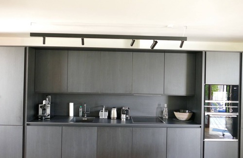 The top modern house, furnished with designer furniture, has around 120m² of living space, spread over 2 floors. On the lower floor there is a spacious, open, fully equipped kitchen and a cozy living room with TV and a bathroom with shower.
