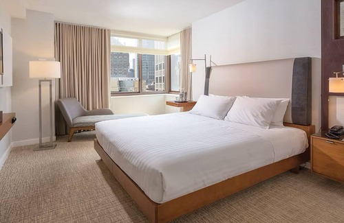 Welcome to the heart of the city that never sleeps, this serene and sophisticated resort/hotel is nestled in Manhattan and you can walk to Times Square! The suite comes with many modern conveniences and amenities to make your stay in the Big Apple a memorable one. This is the perfect place to rest, relax, and recharge between adventures. The complimentary fitness, laundry and business centers can also make your stay productive. The Roof Top lounge has a beautiful view of the city day or night!