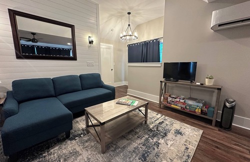 Sip a coffee on the private deck high up in the trees. Enjoy the outside fire pit. Delight in the Fall weather with nearby hiking trails, boutique shopping, and local dining.