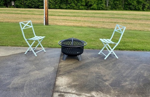 One queen & one full size bed, Max 4 people. New washer and dryer. 50 inch flat screenTV with cable/ internet. Peaceful, quiet atmosphere!!! Perfect for couples get away. Explore local brewery's, wineries, restaurants, golf courses, rail trails, and state parks to name a few.