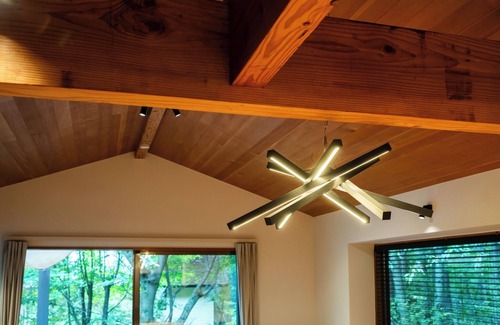 The villa is built facing south and receives gentle sunlight all day long and mother and baby deer sometimes make an appearance in the vast forest next to the site