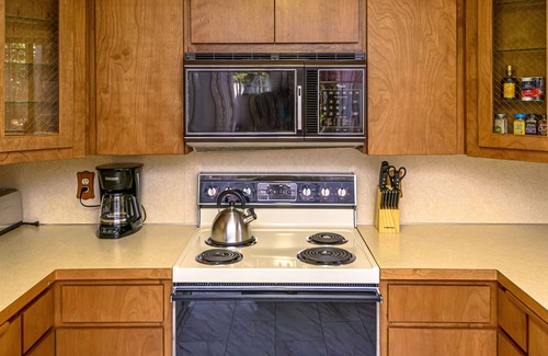 You'll also find a comfortable couches and love seat, dining area for up to eight and a breakfast bar. The kitchen is stocked with all the dinnerware, pots and pans you'll need for cooking