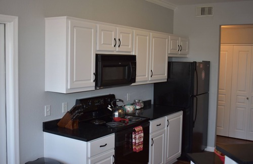 Relax and enjoy this open concept unit. The living area has a sofa, love seat and a 50" smart television with cable and wi fi. Prepare your own great meals, delicious desserts and fabulous drinks in a well stocked kitchen.