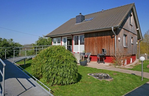 The living room invites you to linger with bright, modern interiors in the Scandinavian style, comfortable couches and views of the beautiful garden. The crackling stove and underfloor heating provide cuddly warmth even in colder seasons. The covered porch is directly accessible from here and offers views of the garden and the adjacent (separated and fenced) pond. With the flat-screen TV, a music system and free Wi-Fi was also thought of the media entertainment. The kitchen is equipped with various technical amenities to prepare delicious meals. Also on the ground floor is a single bedroom, which is easy to reach for wheelchair users. On the same level is the modern, barrier-poor bathroom, which was furnished with a floor-level shower and shower stool. The washbasin is also wheelchair-accessible and the WC provides secure hold.