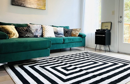 Imagine taking it easy at this unique and tranquil getaway surrounded by trees on a one acre lot. This relaxing one bedroom self checkin private entry suite features a stylish modern design style. The space has a string lit private patio with a picnic table, a plush king sized bed, free Wi-Fi and free covered parking. With televisions set up in the living room and bedroom, enjoy your favorite streaming shows in peace. It is equipped with a full kitchen and shower, with complimentary toiletries.