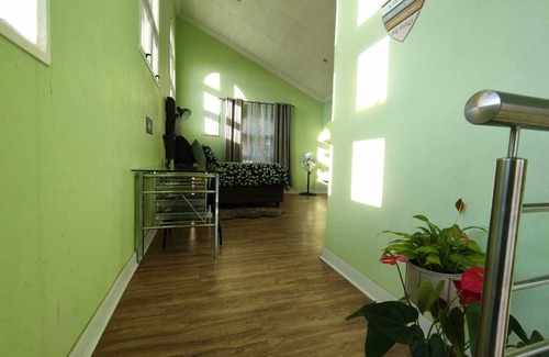 Welcome to your cosy loft stay! This charming loft is split between two levels for added comfort and privacy. Upstairs features a private bedroom and en-suite bathroom, offering a peaceful retreat. Downstairs, you'll find a fully equipped kitchen and a comfortable living space, complete with cleaning supplies, a gas stove, pots, pans, cooking utensils, and basic refreshments like tea, instant coffee, and powdered milk. Step outside to enjoy your private outdoor area. Pets are welcome on request, a kennel and dog bowl are provided to ensure they’re just as comfortable. The property is safe and serene, secured with a reliable alarm system for peace of mind. Whether travelling for work or rest, this space offers everything you need for a self-catered, relaxed, and enjoyable stay.