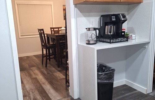 Kick back and relax in this bright and cozy 3-bedroom, 1-bath retreat! Start your day sipping coffee on the welcoming front patio, then end it with a glass of wine under the stars on the spacious back patio. Inside, you’ll find stylish, comfortable bedrooms that sleeps 6, a fully stocked kitchen, and a living space perfect for game nights or movie marathons. Located just minutes from local favorites. Spacious dining table can be used as work station.