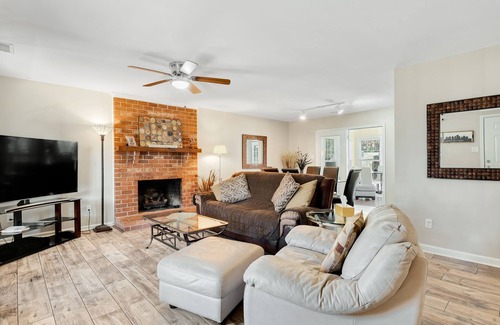 Ginger's House is a single level home, featuring three bedrooms, a 65" TV, gas logs and an awesome sun room. The back yard is fully fenced in. There is former detached garage that is now a studio on the property. It is in the back right corner of the lot, outside the back yard fence. It has its own fenced in area. There maybe guests there during your stay. They will not have access to Gingers House and you will not have access to the studio. We also have an RV that guests use when we are not using it. It is parked all the way in back. There maybe guests in it as well. As with the studio, they will not have access to Gingers House. The only shared area is the parking, and there is plenty of it. Feel free to message me if you have further questions or concerns.