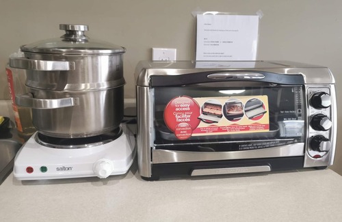 - Kitchenette with microwave, fridge, Keurig Coffee Machine , decaf coffee and teas, toaster oven, induction cooktop and all kitchen supplies