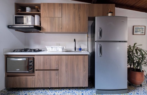 The space is a traditional Envigado flat with good space and light. The patio is large; with a table and chairs so you can enjoy dining under the stars! The apartment is equipped with all basic amenities to make you feel at home and to entertain guests! TV's in each bedroom and in the living room. Guests also have access to washing machine and dryer.