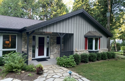 The All American Green House is a private lake front home in the woods that offers all of what Door County has to offer. This home has three bedrooms, one sleeping porch and 2 bathrooms, however it can sleep up to 10 people (2bds -king bed w/ trundles; 1bd - bunk bed w/ full bottom bunk and twin w/ trundle; sleeping porch - twin w/ trundle. There is a full kitchen and laundry. One of the best rooms of the house, however is it screened in porch overlooking the lake. It is also very close to downtown Ephraim for shopping and restaurants. This property has great water access with its own private dock. This is one of the most beautiful and charming places to vacation.