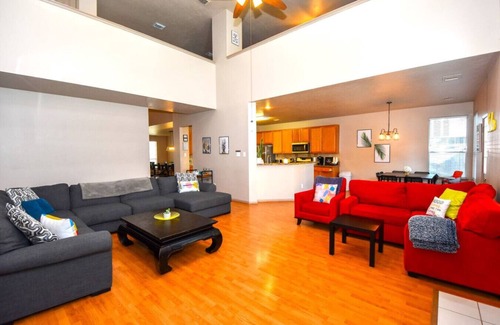 This seven-bedroom home is structured for group travel at scale, with 16 beds, four bathrooms, and a layout that keeps movement and privacy in balance. Two king suites on the ground floor offer a quieter setup for early risers, while the upstairs bunk room absorbs the overflow without sacrificing comfort. Shared spaces are open and functional, and the backyard includes a pool, spa, and grill positioned for steady use. Located on a quiet residential street, 25 minutes from downtown Houston.