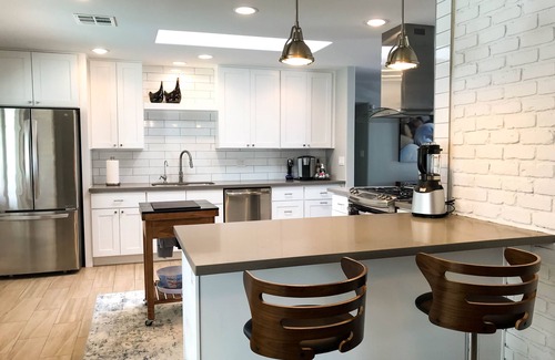 Step into a world of excitement and entertainment at our recently remodeled 1960s ranch-style home. This isn't your typical rental – it's a vacation home designed for maximum enjoyment! With three bedrooms (plus an optional 4th bedroom in the huge Master closet), this 2-bath haven has everything you need for an unforgettable stay. The bright and spacious kitchen features state-of-the-art appliances, making it perfect for culinary adventures.