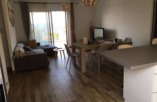 Our apartment is located in ALGAJOLA, village of Balagne in Haute-Corse, at the seaside between Ile-Rousse and Calvi. A great place! The apartment is on the top of the village, on the second and last floor of a small building. It has an area of 75m ² and 2 terraces of 45m ² with sea view on one side and mountains on the other. It is recent and very bright. It consists of: 1 large living room with kitchen, pantry and sofa. 2 bedrooms with double bed. 1 bathroom. Air conditioning in each room. 1 private parking space. Beach within walking distance 200 meters. Local stores. Nearest airport Calvi 15 kms and Port Ile Rousse 8.5 kms.Rental for a minimum week.