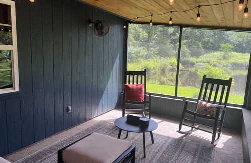 Private cozy getaway nestled in the woods of Northeast Texas. This cabin retreat has lots of outdoor fun. Enjoy your morning coffee on the screened in porch or around the glowing fire of the fire pit. Take a walk in the woods, enjoy some fishing or just sit and rela in