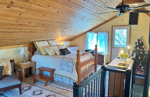 Situated in the middle of 10 acres, this salt box cabin with loft bedroom, allows you to “get away from it all” without “ roughing it”. On a calm day it is not unusual to wake up to absolute quiet on the deck. Just hang out and enjoy Mother Nature or take a short trek to the stream at the bottom of the property. Relax and recharge