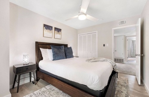 Kick back and relax in this calm, stylish space. The condo has just been completely renovated from top to bottom to provide a warm, cozy, and modern feel. Whether you're here for business or vacation I'm sure you'll enjoy your stay. Quaint, private patio. Parking is available right in front of the condo.
