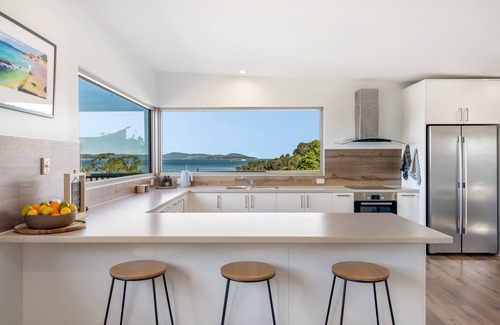 This coastal retreat is just a short 400m stroll from Pristine Primrose Beach. Offering stunning panoramic views and modern comforts. Wake up to the gentle sound of waves and the scent of the sea breeze. You'll also be treated to mesmerising views that span across the sparkling waters. Offering the flexibility of four bedrooms the home accommodates groups & families seeking a retreat. The deck that envelops the home, is perfect for leisurely barbecues and relaxation.