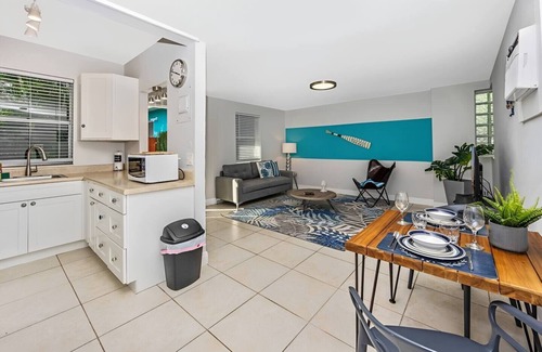 Relax in this charming 1-bedroom retreat just 4 minutes from Hollywood Beach. Ideal for couples or solo travelers, it features a cozy interior and a private patio with a gazebo—perfect for morning coffee or evening wine. Includes a full kitchen, fast Wi-Fi, smart lock entry, and free parking. Located in a quiet neighborhood close to shops, restaurants, and major roads.