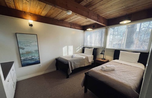 Escape to our cozy cottages nestled in Tanglewood Park's peaceful woods. Cottage #1 features 2 cozy bedrooms, 1 bathroom, a generous living room. Relax with stunning lake views and a variety of activities. Go fishing, boating, or swim in our seasonal pool. Enjoy golf or Softgolf, horseback rides, and BMX Racing. Don't forget your furry companion; we're pet-friendly! Let them roam freely at Tanglewoof, our dedicated dog park. Unwind in nature's beauty and make unforgettable memories.