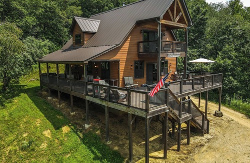 This exquisite cabin is the perfect getaway for couples needing to escape or friends wanting to make memories. With 3 Bedrooms and 3 bathroom there's plenty of space for everyone. Comfortably sleeps 8 (3 Queen/2 Full). Pets are always welcome! Enjoy the wonderful amenities this cabin has to offer such as Air conditioning, Extra large balcony and deck plus a covered "Tennessee porch" for morning coffee, afternoon naps or evening cocktails. Shuffleboard, games, movie area and more! Washer and Dryer on Site. Fire pit area and outdoor gathering area for even more outdoor fun!