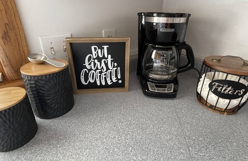 The entire lower level is a newly constructed space listed as the theme room. The theme room space features a pub height table for 6, a long bar area including two mini refrigerators and many cabinets for storage. Open and next to the pub area is a living space with a sleeper sofa to accommodate one overnight guest, a smart television and two beautiful, new glass garage doors. The open design is wonderful to enjoy the beautiful outdoor view with the doors open or close. When open, invite the peaceful outdoors as a combined space. When the garage doors are closed, a stunning view is enjoyed thru the lightly tinted glass, from the inside our out. A full bath with stand up shower is next to the bedroom and a laundry space is in the bedroom closet.