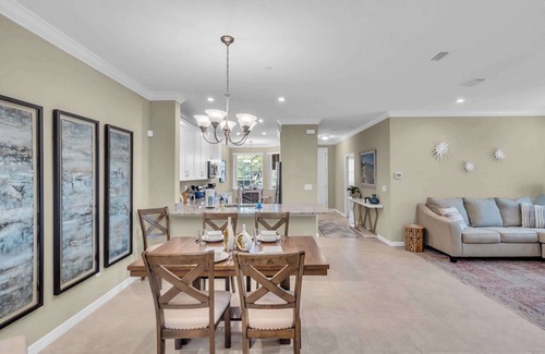 Step outside to world-class amenities: a heated pool and spa, Bahama Bar & Grill, tennis, pickleball, bocce, fitness center with group classes, dog park, fire pit, clubhouse, and direct access to the Legacy Trail. Perfect for biking, walking, or jogging. Available for stays of 30–180 days year-round.