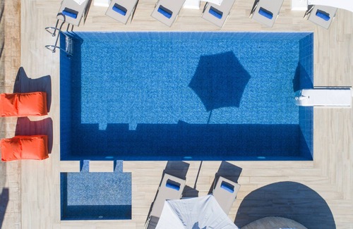 Cleverly designed indoor living and sumptuous furnishings create a calming sensory design throughout. The spacious villa spreads through two floors, accommodating up to 8 guests in real beds. In addition, 2 more guests can be accommodated, one in a folding bed (which can be placed either in one of the double bedrooms with the Queen Size beds, or in the living room area) and the other one in the single sofa of the living room. The maximum capacity 10 guests.