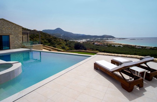 Exceptional 2BD villa Bespoke, heated pool, jacuzzi, sauna, sea & sunset view is located in Falassarna. Exceptional 2BD villa Bespoke, heated pool, jacuzzi, sauna, sea & sunset view provides accommodation, featuring Parking, View, Private Pool, among other amenities. This Villa features Parking, View, Private Pool, to make your stay a comfortable one.
