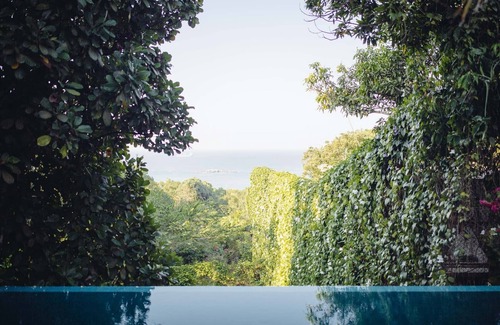 ‘Unakanda' (a shortening of the location Unawatuna Kanda; “kanda” = hill), is the creative passion project of an Australian architect. Four bedrooms and four bathrooms are spread between two unique buildings either side of an infinity pool. Laid back, fresh spaces celebrate amazing sea views, climate, gardens and wildlife. Unakanda is a short walk above Unawatuna beach and less than 15 minutes from Galle Fort by tuktuk. A mix of mature trees give the sloping site a jungle garden feel which wraps around an old stone quarry, full of water, fish and turtles. It is a magnet for bird life and playground for monkeys and squirrels.