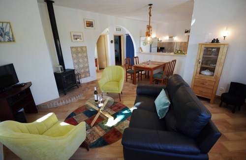 Open access to the guest garden is exclusive for apartment visitors. Common use is just the parking area and the utility room with washing machine. Worth mentioning, that both units are also wonderful during cooler season, because all rooms got their very economically wall heating working with infra-red, which is very healthy and spends cushy warmness. The apartment got in addition to them also a wood burner.