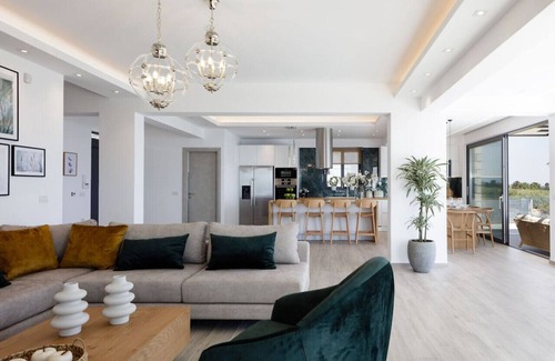 Exclusive Modern Villa with impeccable sea view, private heated pool, hot tub is located in Kefalas. Exclusive Modern Villa with impeccable sea view, private heated pool, hot tub provides accommodation, featuring TV, Oceanfront, Fireplace/Heating, among other amenities. This Villa features TV, Oceanfront, Fireplace/Heating, to make your stay a comfortable one.