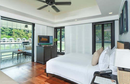 There are 18 Water Cottages built on stilts above the water, and nine Beachfront Cottages with a panoramic view of the cove. Each of these rooms has a 53sqm floor area designed for three.