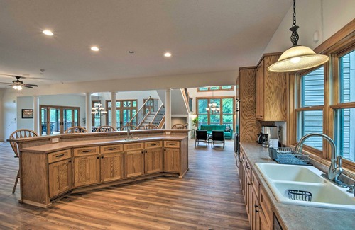 MAIN KITCHEN: Fully equipped w/ stainless steel appliances, cooking basics, drip coffee maker, toaster, knife set, dishware & flatware, island w/ bar stools