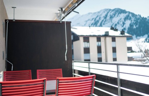 The apartment, with its attractive living space, is nicely and functionally furnished to guarantee a comfortable stay. In the living room, a Swedish stove provides cozy warmth and a homely atmosphere. In addition to a dining table and a TV with satellite reception, there is also a practical foldaway bed (140 cm) that can accommodate two people. There are also books and board games for entertaining evenings. The bedroom has a spacious wardrobe, a comfortable king-size bed (180 x 200 cm) for two people and a chest of drawers. The bathroom is modern and has a WC, shower, double bathroom sink and hairdryer. The open-plan kitchen has everything you need to prepare meals, including a ceramic hob and oven, a fridge with freezer compartment, a Nespresso machine and a filter coffee machine. There is also a raclette and cheese fondue set for cozy dinners. The balcony is furnished with a dining table and four chairs, ideal for enjoying meals al fresco. A cot is available for the youngest guests, and a high chair can be provided on request. A washing machine and tumble dryer are available for shared use in the basement of the house for a fee of CHF 20. Smoking is not permitted in this non-smoking flat, but Wi-Fi internet is available throughout the flat to make your stay as comfortable as possible.
