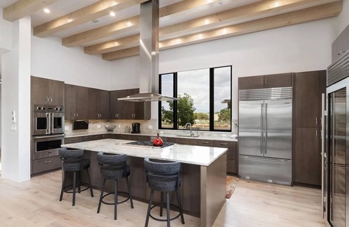 Welcome to Oso Vista Retreat, a captivating luxury vacation rental located in Las Campanas in the enchanting city of Santa Fe, NM. This stunning property boasts breathtaking views of the surrounding mountains, creating a serene backdrop for your getaway. The interior is a harmonious blend of contemporary elegance and traditional Southwestern charm, featuring high ceilings, expansive windows, and carefully curated furnishings that exude comfort and sophistication.