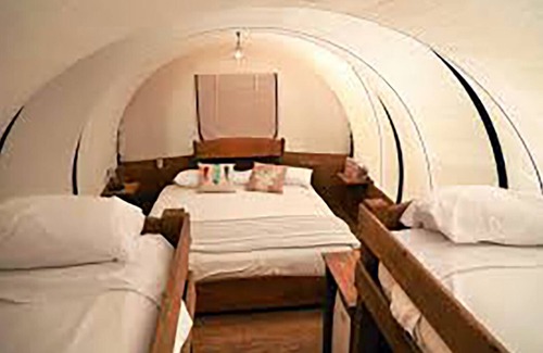 1. This wagon sleeps 6 (1 king bed and 2 bunk beds)