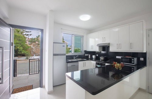 This villa, located in the Pernera area, is within walking distance to all the beaches, shops and amenities in Pernera, and a short drive to the main Protaras strip.As you enter the villa, you will find the spacious and very modern open-plan living room, kitchen and dining area, surrounded by patio doors leading out to the garden and pool. The living room features a comfortable seating area with widescreen, satellite TV; the dining area has a table and seating for 6 people as well as an extra TV, and the kitchen is equipped with all appliances and utensils needed for a comfortable self-catering stay.